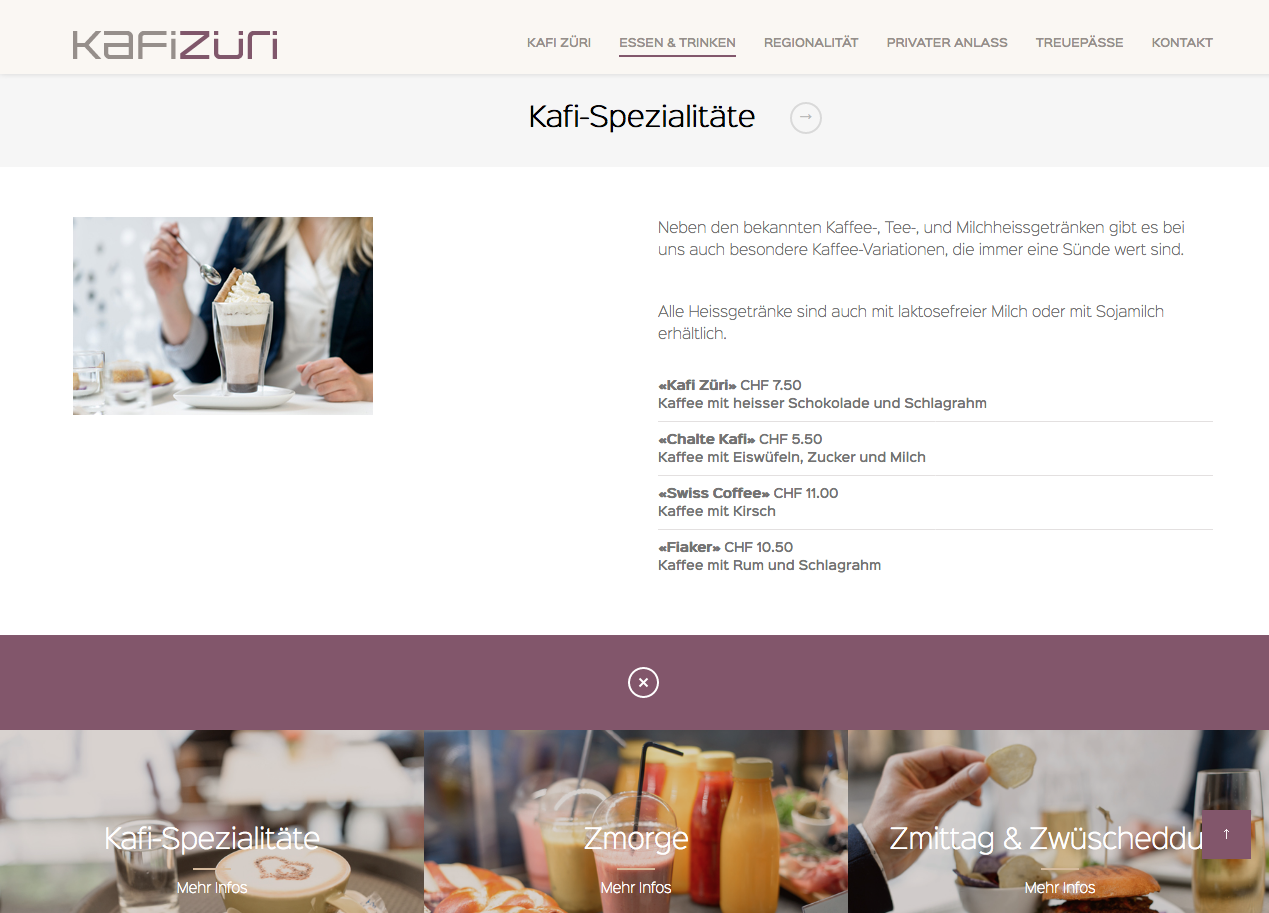 Die kleine Webseite ist eine sehr modern «Onepage (parallax scrolling)» Webseite und informiert über das Restaurant und Speisen.