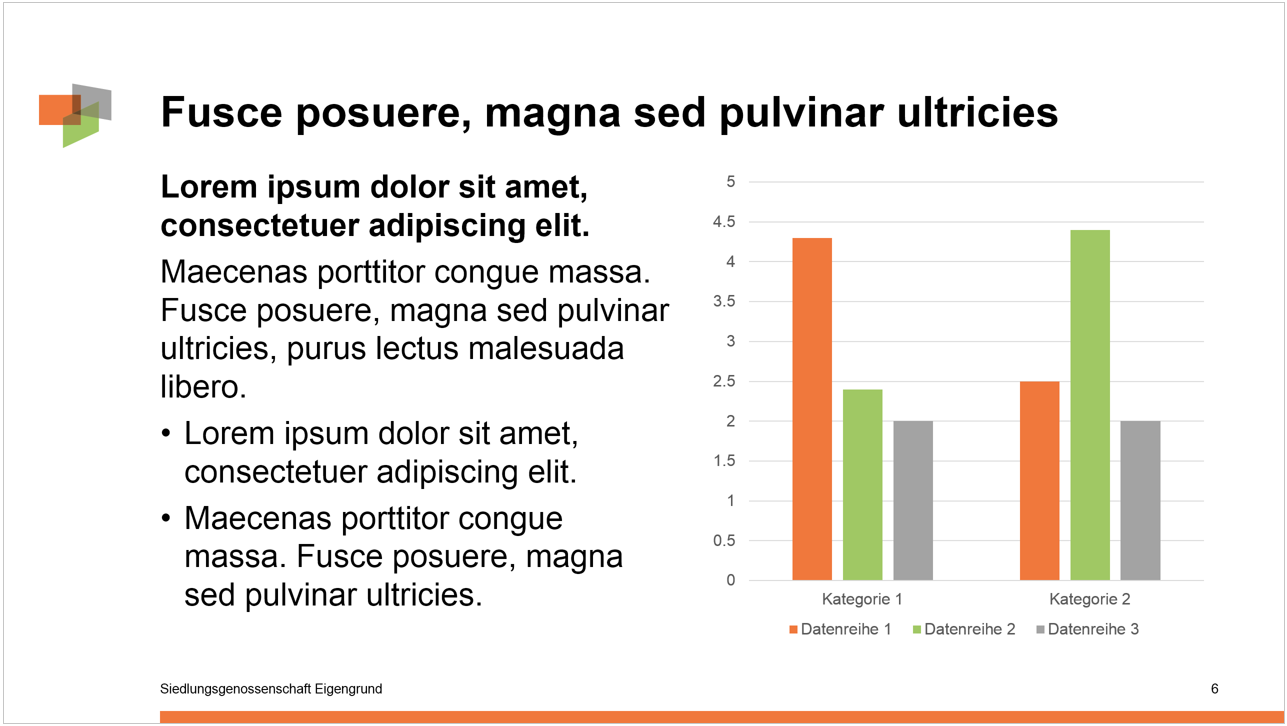 Für die Siedlungsgenossenschaft Eigengrund haben wir sämtliche Office-Vorlagen (Word, Powerpoint, Excel) neu nach CI/CD-Vorgaben neu gestaltet und umgesetzt.